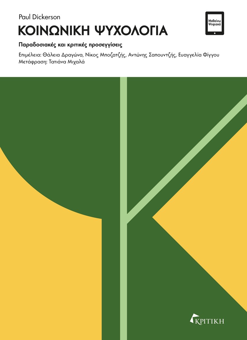 Η Κοινωνική ψυχολογία αποτελεί ένα εισαγωγικό εγχειρίδιο το οποίο καλύπτει τα κεντρικά ζητήματα της κοινωνικής ψυχολογίας, όπως η προκατάληψη, η επιθετικότητα, η συμμόρφωση, η πειθώ, η έλξη, οι σχέσεις και η φιλοκοινωνική συμπεριφορά, με τρόπο τολμηρό και καινοτόμο. Αφενός παρουσιάζει λεπτομερώς τις κλασικές και σύγχρονες έρευνες. Αφετέρου προχωρά παραπέρα, καθώς συζητά και παρουσιάζει την «κριτική» γραμματεία της κοινωνικής ψυχολογίας. Με τον τρόπο αυτό ο αναγνώστης έρχεται σε επαφή με τις συζητήσεις και τις αντιπαραθέσεις που εκτυλίσσονται στα συνέδρια της κοινωνικής ψυχολογίας, στα επιστημονικά περιοδικά της επιστήμης αυτής καθώς και σε εξειδικευμένα κείμενα. Στα παιδαγωγικά χαρακτηριστικά του βιβλίου, μεταξύ άλλων, περιλαμβάνονται: οι ενότητες «Κριτική ανακεφαλαίωση» (βοηθούν στην κριτική αξιολόγηση της βιβλιογραφίας)· τα πλαίσια «Κεντρικός ερευνητής/Κεντρική ερευνήτρια» (προβάλλουν σημαντικές προσωπικότητες στον χώρο της κοινωνικής ψυχολογίας)· τα πλαίσια «Θέμα εστίασης» (παρουσιάζουν κλασικές και σύγχρονες μελέτες)· οι ενότητες «Προτεινόμενη βιβλιογραφία» και «Χρήσιμοι διαδικτυακοί σύνδεσμοι» (προσφέρουν χρήσιμη καθοδήγηση για περαιτέρω μελέτη).