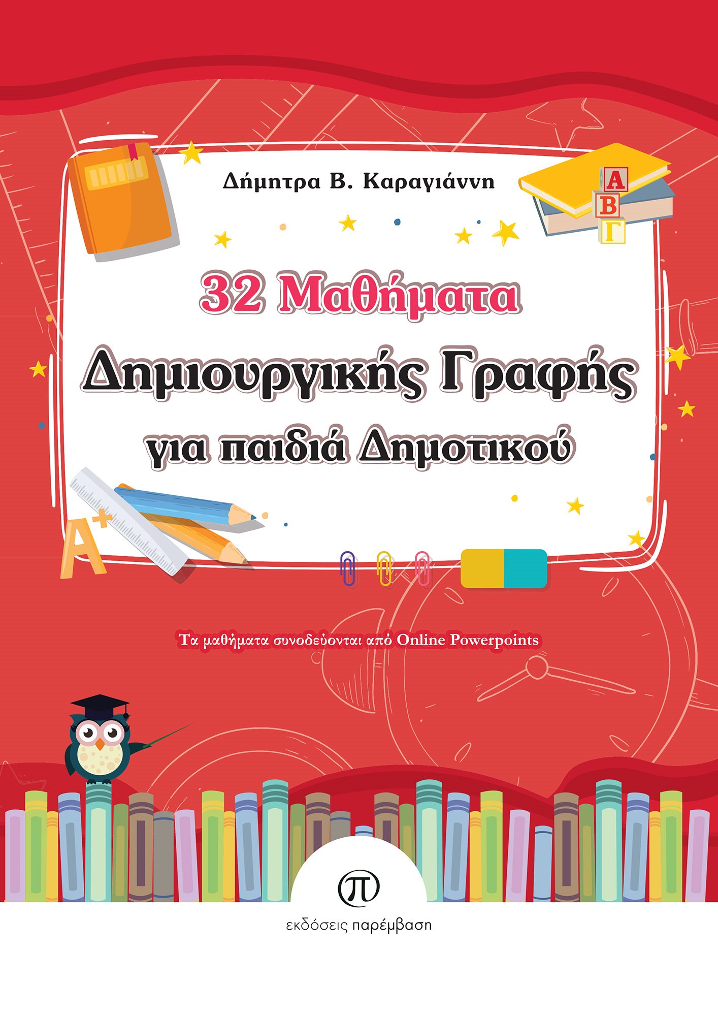 Ένα βιβλίο με μαθήματα Δημιουργικής Γραφής για παιδιά Δημοτικού που στόχο έχει να χρησιμεύσει κατά την εκπαιδευτική διαδικασία, αλλά και να μυήσει τους μαθητές στον κόσμο της γραφής, δίνοντάς τους κίνητρα και ερεθίσματα για να απελευθερώσουν τη σκέψη τους με τρόπο δημιουργικό και να μάθουν να αποτυπώνουν τη σκέψη τους πάνω στο χαρτί. Μέσω των, μαθημάτων Δημιουργικής Γραφής που παρουσιάζονται στο βιβλίο, τα παιδιά μαθαίνουν να γράφουν σωστά μέσα από μια ευχάριστη διαδικασία, καλλιεργούν τη σωστή χρήση της γλώσσας και της έκφρασης, έρχονται σε επαφή με σπουδαία κείμενα της ελληνικής λογοτεχνίας, με μεγάλους Έλληνες και ξένους λογοτέχνες, ενεργοποιούν τις γνώσεις τους στη γραμματική και στο συντακτικό, μαθαίνουν να χτίζουν τον λόγο και τηνέκφρασή τους, συνδυάζοντας τη λογοτεχνία με άλλες μορφές τέχνης. (Από την παρουσίαση στο οπισθόφυλλο του βιβλίου)