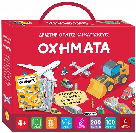 Ένα εκπληκτικό κουτί γεμάτο εκπλήξεις και… οχήματα! Περιέχει ένα βιβλίο με διασκεδαστικές δραστηριότητες και κατασκευές, 100 αυτοκόλλητα, 200 χαλκομανίες και 4 υπέροχα σκηνικά για να τα διακοσμήσεις. Άφησε ελεύθερη τη φαντασία σου για τις πιο όμορφες δημιουργίες!