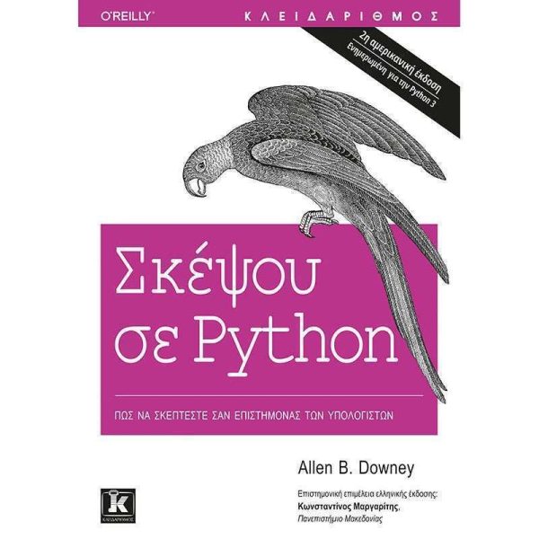 Αν θέλετε να μάθετε προγραμματισμό, τότε η Python είναι ιδανική για να ξεκινήσετε. Αυτός ο πρακτικός οδηγός σας παρουσιάζει τη γλώσσα βήμα προς βήμα, ξεκινώντας από τις βασικές έννοιες του προγραμματισμού για να προχωρήσει στη συνέχεια στις συναρτήσεις, την αναδρομή, τις δομές δεδομένων, και τον αντικειμενοστρεφή προγραμματισμό. Η δεύτερη έκδοση του βιβλίου και ο συνοδευτικός κώδικας έχουν ενημερωθεί ώστε να καλύπτουν και την Python 3. Με τη βοήθεια των ασκήσεων που υπάρχουν σε κάθε κεφάλαιο, θα δοκιμάζετε τις έννοιες του προγραμματισμού στην πράξη καθώς τις μαθαίνετε. Το Σκέψου σε Python είναι ιδανικό για μαθητές επιπέδου δευτεροβάθμιας και τριτοβάθμιας εκπαίδευσης, αλλά και για αυτοδίδακτους ή και επαγγελματίες που χρειάζονται βασικές γνώσεις προγραμματισμού. Όσοι είστε εντελώς αρχάριοι και μόλις τώρα κάνετε τα πρώτα σας βήματα θα μάθετε πώς μπορείτε να ξεκινήσετε τον προγραμματισμό σε Python μέσω φυλλομετρητή Ιστού. •Θα ξεκινήσετε από τα βασικά, όπως τη σύνταξη και τη σημασιολογία της γλώσσας •Θα διαβάσετε πώς ορίζεται σαφώς κάθε έννοια του προγραμματισμού •Θα εξοικειωθείτε με τις τιμές, τις μεταβλητές, τις εντολές, τις συναρτήσεις και τις δομές δεδομένων ακολουθώντας μια συγκεκριμένη λογική διαδρομή •Θα ανακαλύψετε πώς να χρησιμοποιείτε αρχεία και βάσεις δεδομένων •Θα κατανοήσετε τα αντικείμενα, τις μεθόδους, και τον αντικειμενοστρεφή προγραμματισμό •Θα μάθετε να χρησιμοποιείτε μεθόδους αποσφαλμάτωσης για να διορθώνετε συντακτικά σφάλματα, σημασιολογικά σφάλματα και σφάλματα χρόνου εκτέλεσης •Θα εξερευνήσετε συναρτήσεις, δομές δεδομένων και αλγορίθμους μέσα από μια σειρά μελετών περιπτώσεων Τα παραδείγματα κώδικα που περιλαμβάνονται στο βιβλίο υπάρχουν σε ένα δημόσιο αποθετήριο GitHub, απ’ όπου μπορείτε να τα κατεβάσετε και να τα τροποποιήσετε ελεύθερα.