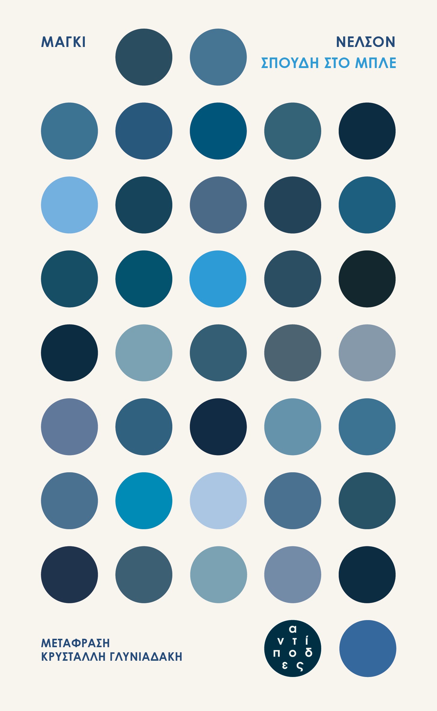 Το μπλε δεν είναι ένα χρώμα, είναι ένα σύνολο αποχρώσεων, αντικειμένων, διαθέσεων, αναφορών, αναμνήσεων, συναισθημάτων. Η Μάγκι Νέλσον, ερωτευμένη με το μπλε, περιπλανιέται στη μελαγχολία, την απώλεια και τον πόθο διερευνώντας τη σύνδεση του χρώματος με το σώμα και το πνεύμα. Συνομιλώντας με τον Γκαίτε, τον Βιττγκενστάιν και τον Μπαρτ, γράφει ένα λυρικό δοκίμιο για τον έρωτα που τελειώνει, για το σώμα που υποφέρει και για την ομορφιά ως καταφύγιο στον καιρό της μοναξιάς και της θλίψης._x000D_