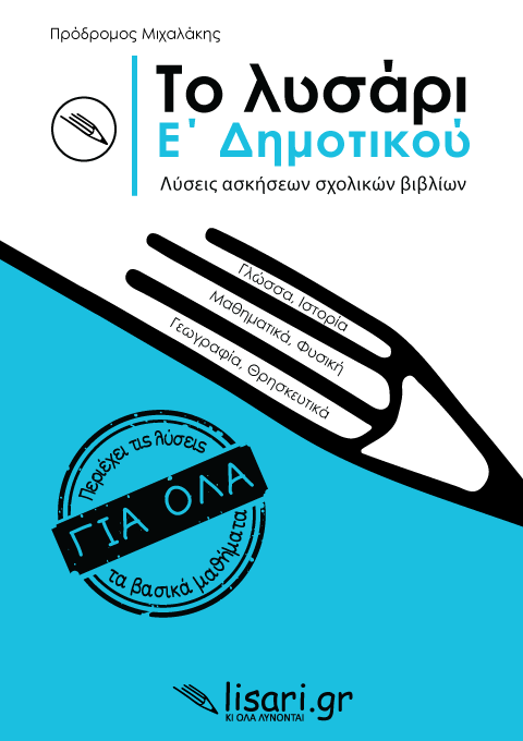 Εκπαιδευτικό βοήθημα που περιλαμβάνει τις λύσεις των ασκήσεων των σχολικών βιβλίων της Ε’ Δημοτικού
